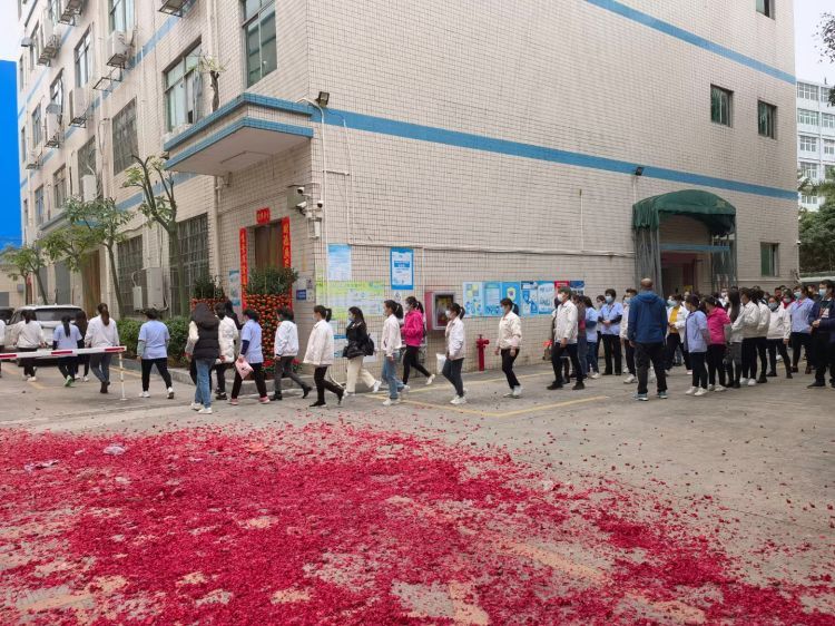 派發開工紅包后,各員工有序入廠開工