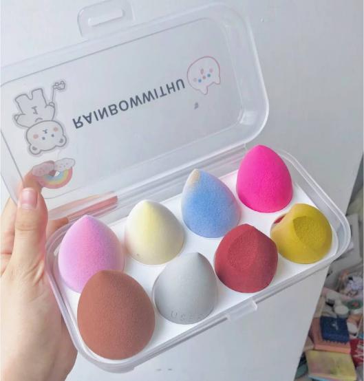 第二個我們來說說美妝蛋,它的質地會更加柔軟一些,而且上妝也更加服帖。在使用的時候,一定要將它用水沖一下,浸濕,再將水分用力擠干。但是美妝蛋的缺點是吃粉比較嚴重,而且有的時候還會稀釋粉底。所以在上底妝的時候就是比較通透的,遮瑕效果沒有刷子那樣好。